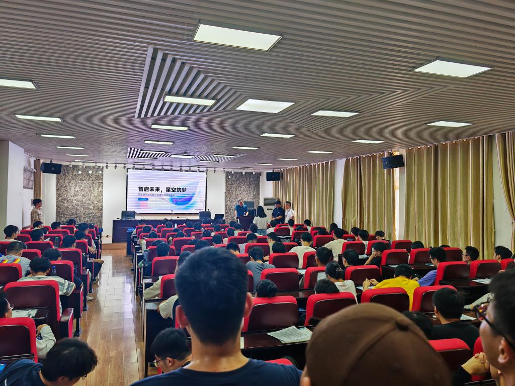 9月5日下午14:30,物电学院于理科楼b413成功举办2025届首场招聘会,本场招聘单位是华诺星空技术股份有限公司。会议由2025届就业专干赵俊程主持,学院党委书记张国强、党委副书记宋国宁、华诺星空人力资源总监穆思亲、04届学生代表熊毅、24届学生代表王帅及近200名毕业生参加了本次招聘会暨就业动员大会。