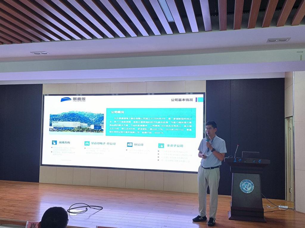 9月15日下午,长沙景嘉微电子股份有限公司在工科三号楼A201举办专场宣讲会,物电学院党委书记张国强,党委副书记宋国宁等参加。现场气氛热烈,座无虚席。
