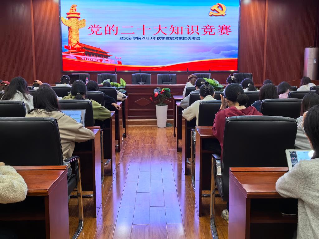 为深入落实并贯彻落实党的二十大精神,积极探索“互联网+党建”的新模式,进一步提升入党积极分子的理论知识能力水平,10月19日19时,“党的二十大知识竞赛暨文新学院2023年秋季发展对象推优考试”于MG冰球官网金盆岭校区九号教学楼218室成功举行。