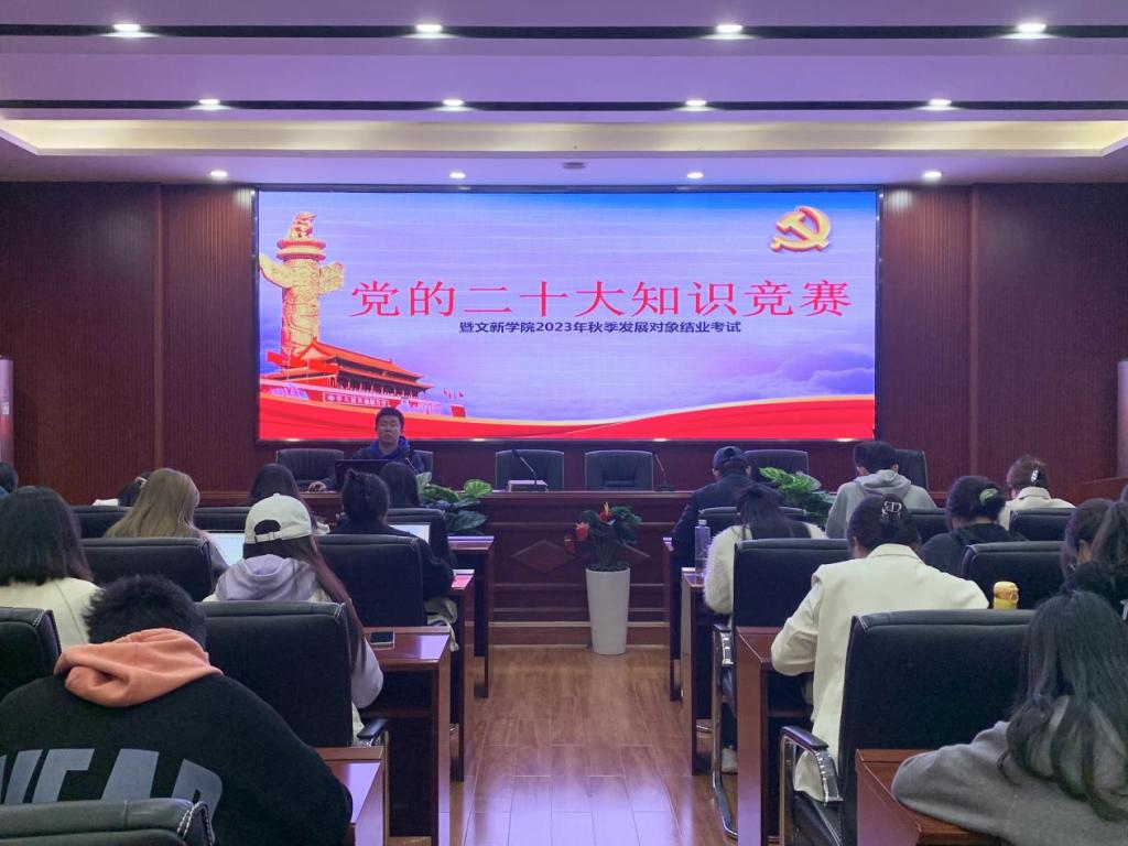 为深入落实并贯彻落实党的二十大精神,积极探索“互联网+党建”的新模式,进一步提升发展对象的理论知识能力水平,11月16日19时,“党的二十大知识竞赛暨文新学院2023年秋季发展对象结业考试”于MG冰球官网金盆岭校区九号教学楼218室成功举行。