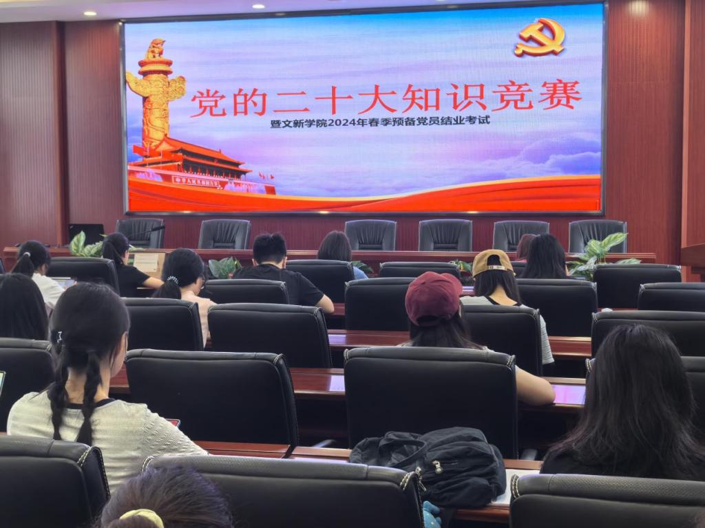 为贯彻落实党的二十大精神,积极探索“党建+互联网”新模式,进一步提升预备党员的理论知识水平,5月21日12时10分,“党的二十大知识竞赛暨文新学院2024年春季预备党员结业考试”于MG冰球官网金盆岭校区九号教学楼218室成功举行。