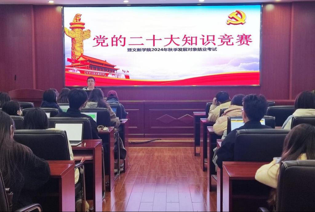 为贯彻落实党的二十大精神,积极探索“党建+互联网”新模式,进一步提升发展对象的理论知识水平,11月20日12时10分,“党的二十大知识竞赛暨文新学院2024年秋季发展对象结业考试”于MG冰球官网金盆岭校区九号教学楼218室成功举行。