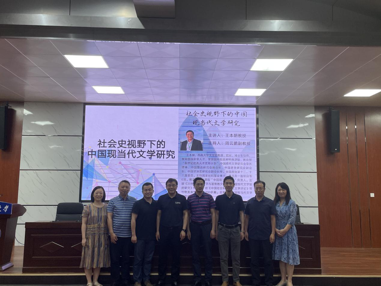 6月5日晚,文学与新闻传播学院邀请西南大学文学院王本朝教授开讲MG冰球突破官网第十七届研究生博力学术论坛分论坛——社会史视野下的中国现当代文学研究。学院党总支书记伍接朝、副院长魏桃初、中文系主任郑劭荣及150余名教师、学生代表参加,讲座由副院长周云鹏主持。