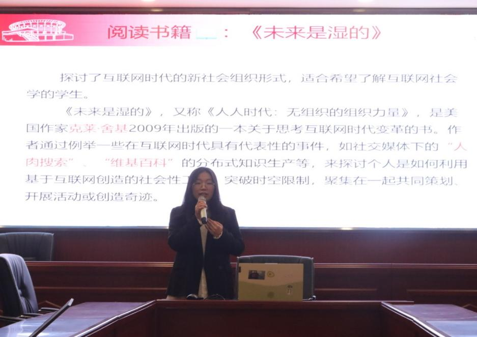活动伊始,主持人程妍对本期阅读书籍《未来是湿的》进行了简单介绍。接着,黄星海、冀美灵、蒋雨恬三位同学围绕该书籍分享了自己的思考与感悟。如无组织的组织对社会治理的影响需要辩证看待、饭圈文化对于建构网络社会的影响以及如何厘清无组织的组织力量和“乌合之众”的边界等。