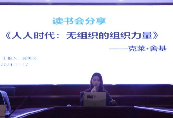 11月17日晚,第三期金岭读书会“悦读经典”系列活动在MG冰球官网金盆岭校区9教218教室顺利举办。此次活动以“无组织的组织力量在数智时代下的机遇与挑战”为主题。文学与新闻传播学院副院长戴钰、赵继光主任出席,陈一点老师点评,前央视主持人、瑞士国家电视台法语主播褚笑为特邀嘉宾,24级新闻班黄星海、冀美灵、蒋雨恬三位同学进行汇报分享,程妍主持,24级新闻班全体研究生参与此次活动。