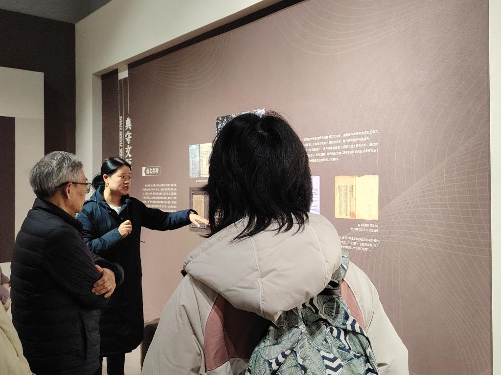 全体师生参观了湖南省图书馆为建馆120周年特意策划的以“书百廿风华,传千年文脉”为主题的湖南图书馆古籍保护与活化利用成果展。踏入展厅,映入眼帘的是湖南省图书馆的百年发展历程。自1904年建馆以来,馆名的更替、青年毛泽东与湖南省图书馆的故事,第一位女馆长黄淑范……桩桩件件都是对历史的深情回望。