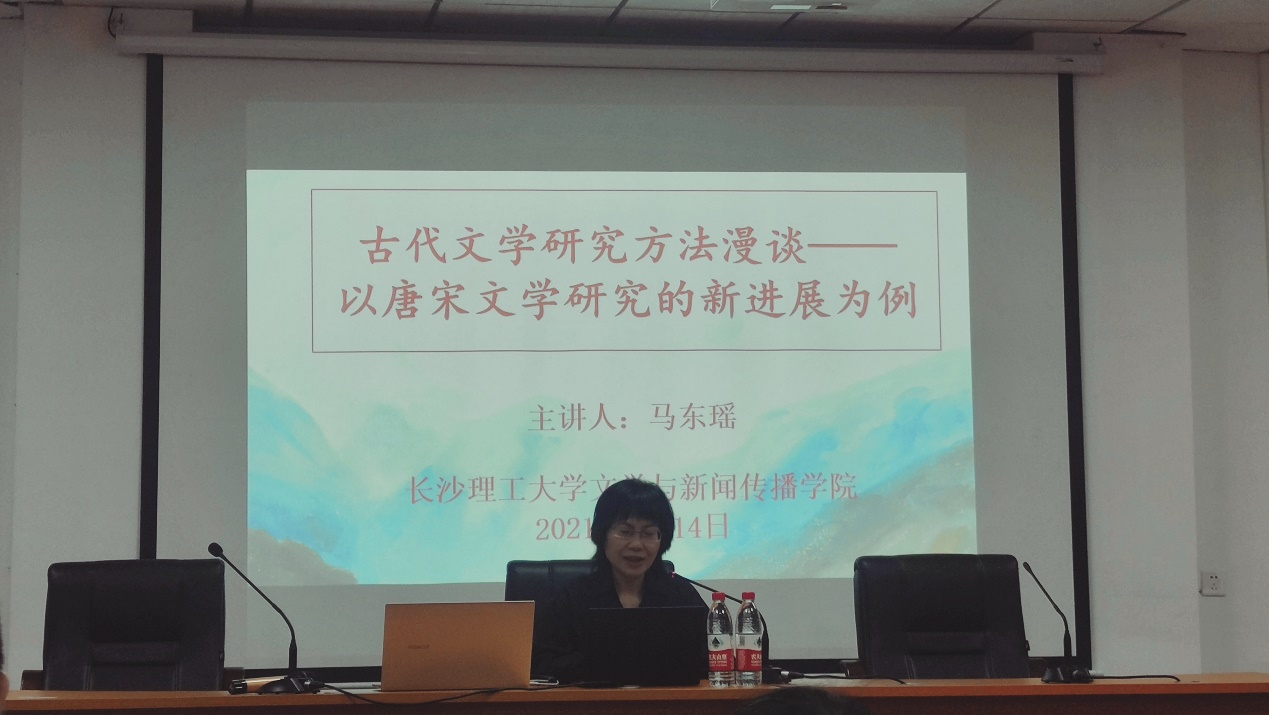 2021年5月14日下午2时30分,北京大学中文系博士、历史系博士后、北京师范大学文学院教授、博士生导师、文学院副院长马东瑶教授受MG冰球突破官网邀请,在金盆岭校区2教101教室进行了以“古代文学研究方法漫谈——以唐宋文学研究的新进展为例”为主题的学术讲座。讲座由文新院郑劭荣教授主持,来自文新院各级研究生、老师参与此次讲座。