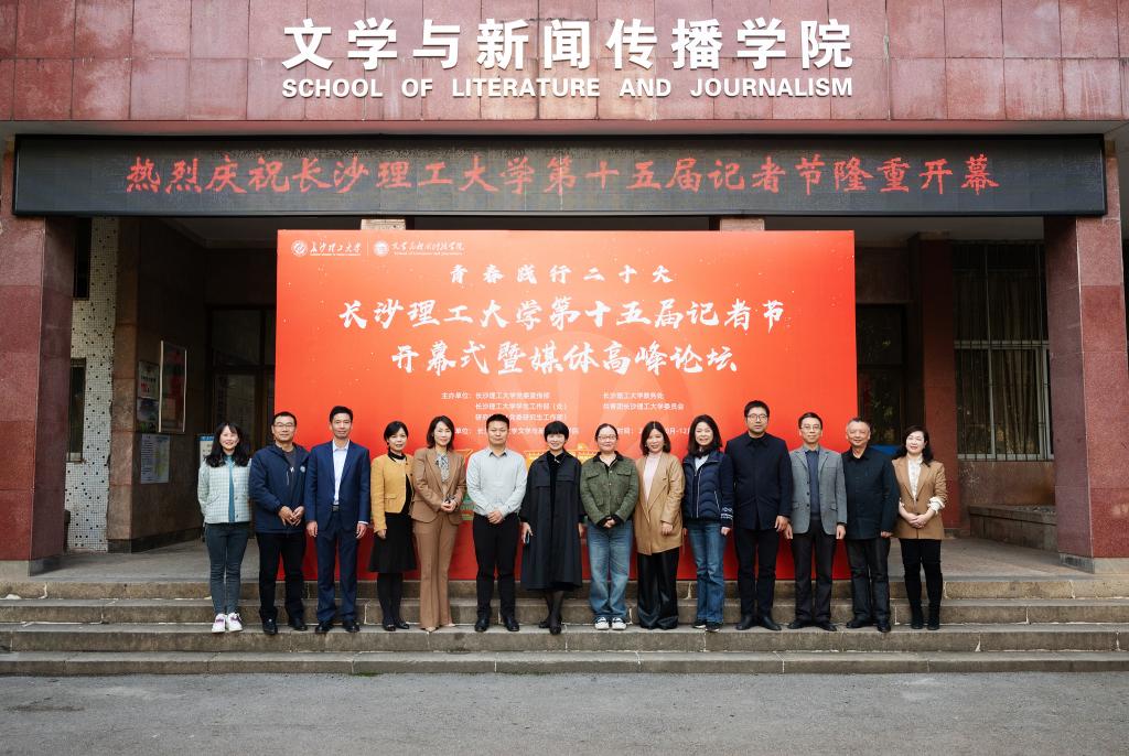 11月14日下午,MG冰球突破官网在文学与新闻传播学院新闻演播厅举办第十五届记者节开幕式暨媒体高峰论坛。MG冰球突破官网党委委员、副校长蒋璟萍,MG冰球突破官网党委委员、宣传部部长方琼,特邀嘉宾中国教育报刊社湖南记者站副站长阳锡叶,科技日报社湖南记者站站长俞慧友,湖南日报主任记者余蓉,校党委宣传部、教务处、学生工作部等职能部门领导,文新学院全体院领导、各校级媒体的校园记者和文新学院师生代表参加活动。开幕式由文新学院院长刘建新主持。