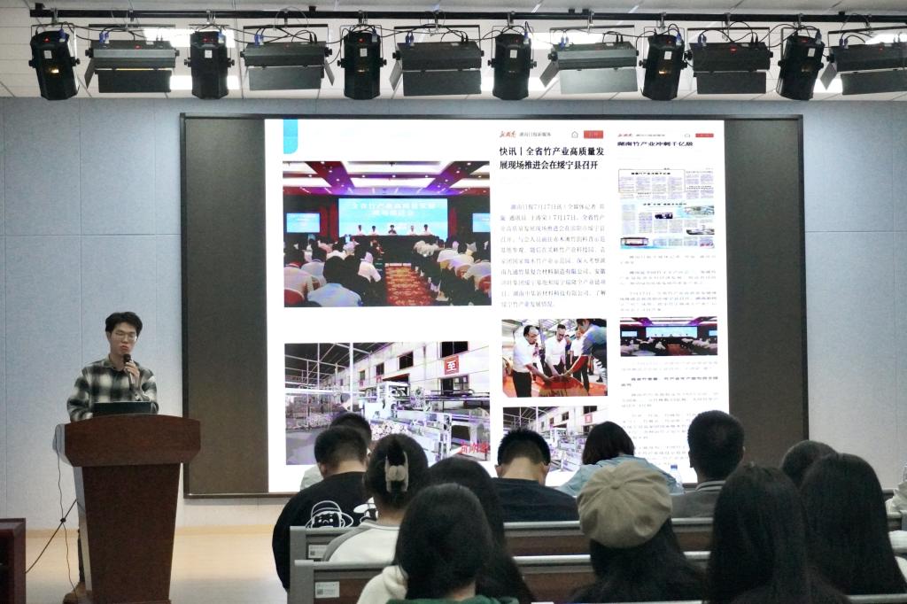 院团委学生会轮值主席陈婷婷担任本次分享会主持人,特邀黄一源、罗婧、覃琴、于涛荣、赵芷涵及汪卓六位优秀学生记者代表作为主讲人。六位主讲人先后发言,向在场同学们揭秘2024年央视春晚长沙分会场、新湖南巴黎奥运会报道项目制片及中广天择直播项目等幕后工作细节,分享他们在新闻采访、稿件写作和实习等方面的工作经验与心得。