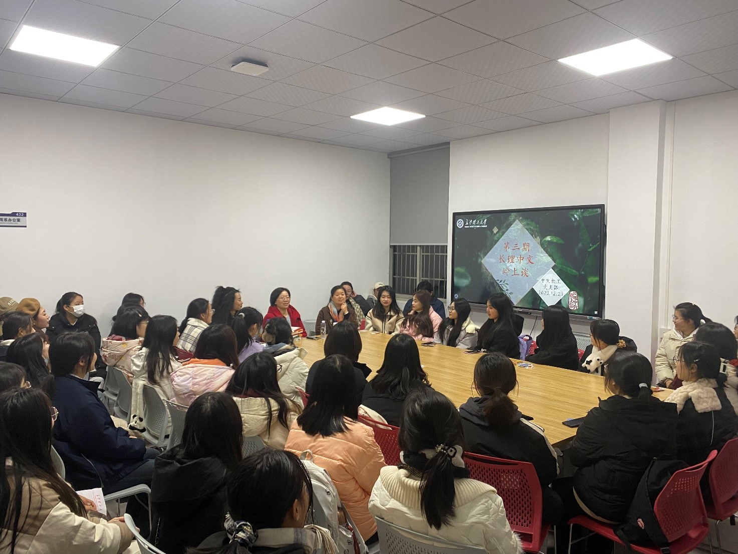 岁末冬寒际,围炉夜话时。2023年12月23日晚,第三期“长理中文岭上谈”师生交流活动在MG冰球突破官网金盆岭校区9教431研讨室成功举办。本期主题为“心理减压”,由谢卓婷老师担任主讲嘉宾,中文教工党支部及中文系部分教师参与讨论。