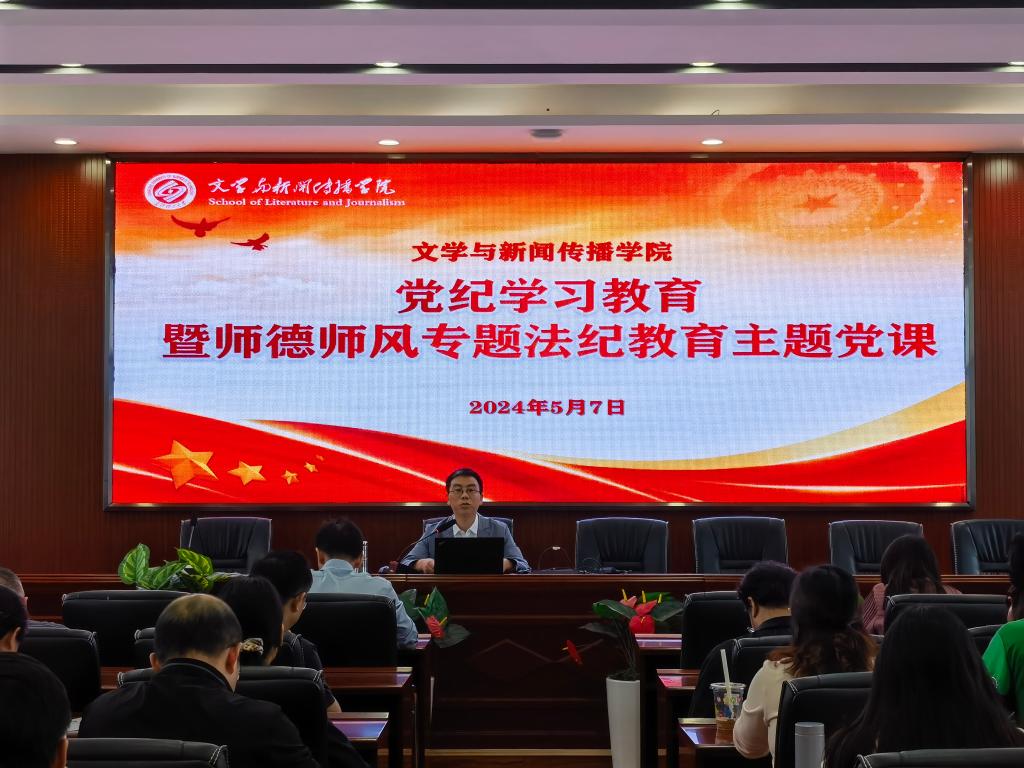 陈仁凯传达了学校党纪学习教育相关会议和文件精神,宣读了学院党纪学习教育工作安排,对师德师风专题法纪教育提出了具体要求,并以“《中国共产党纪律处分条例》的要求与启示”为题讲专题党课。