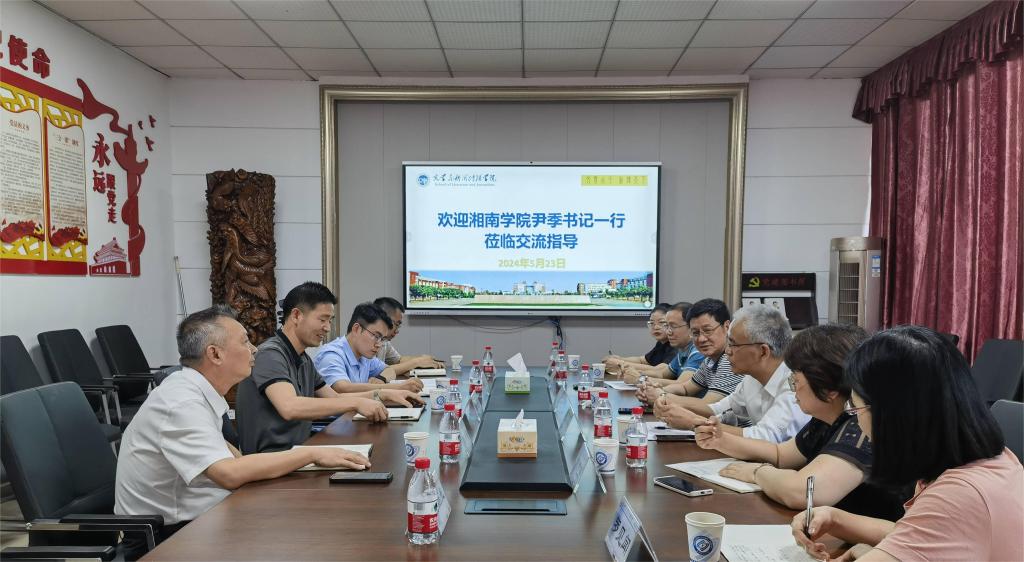 5月23日下午,湘南学院党委委员、纪委书记尹季,文学与新闻学院负责人一行6人来院调研。院长刘建新在金盆岭校区院会议室会见客人。相关院领导参加会谈。