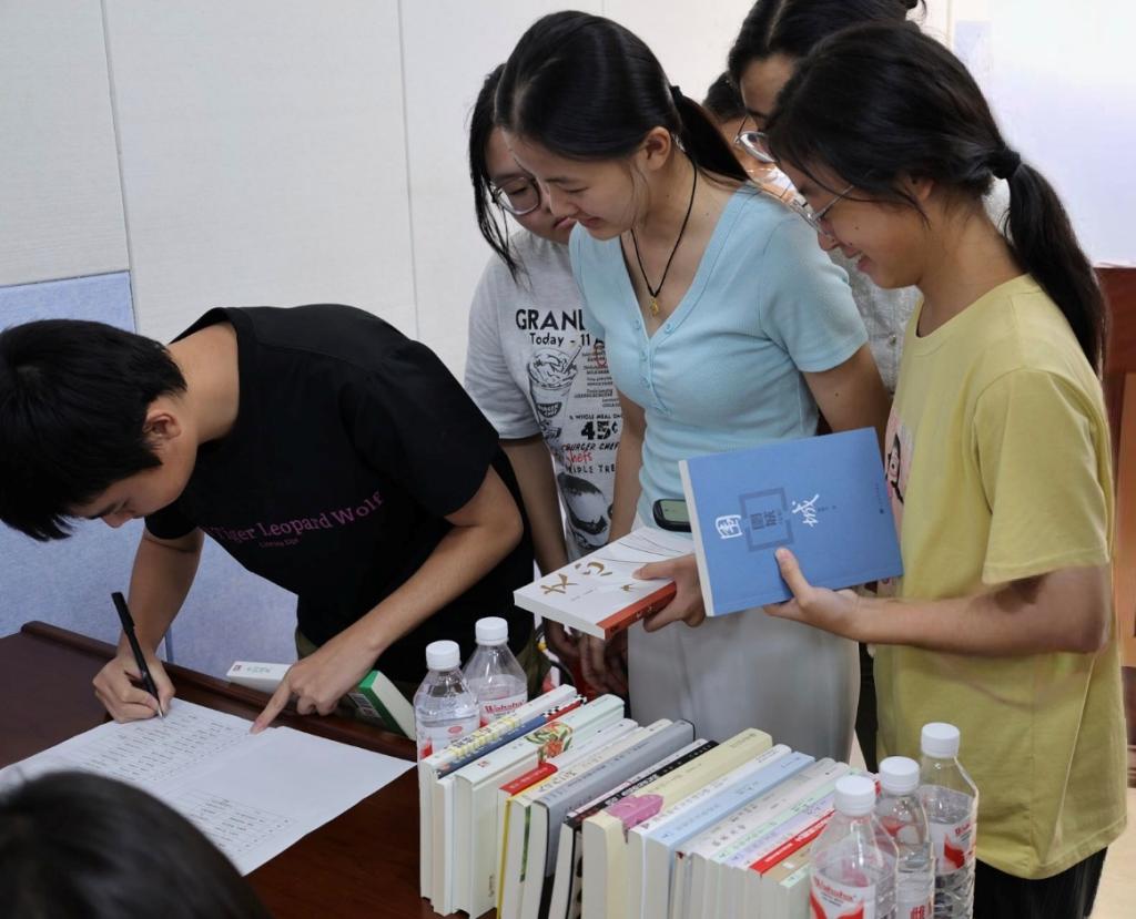 随后,活动进入轻松活泼的“锦鲤礼”互动环节。文新学院教师精心挑选并随机派送30本优质图书,既传递知识分量,更留下学院温暖印记。在“现场问”环节,师生面对面畅聊:老师们不仅倾囊相授大学“通关秘籍”,还倾情推荐电影《安东尼娅家族》及汪曾祺、史铁生等名家作品,勉励学子广泛阅读、跨界积累,全面提升综合素养。