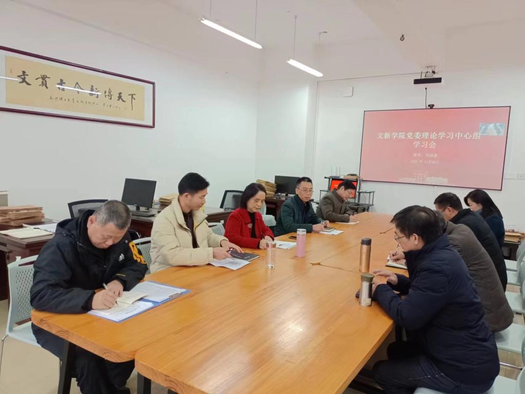 11月30日上午,学院党委理论学习中心组在文科楼B505会议室专题学习习近平总书记关于新时代人才工作的重要论述和《中国共产党统一战线工作条例》。党委副书记(主持工作)陈仁凯主持学习会,党委委员、院长刘建新领学并做中心发言。中心组全体成员参加了集中学习。学校第二巡察组组长胡秀英,副组长王奇、方碧波列席学习会。