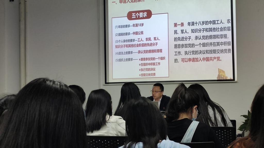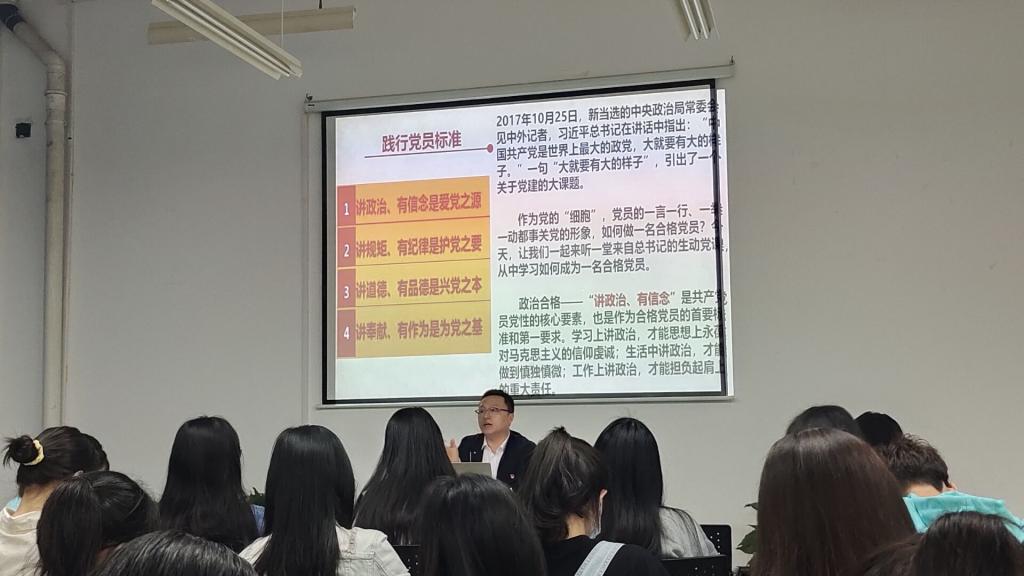党课是对党员和申请入党的积极分子进行教育的重要方式,为提高我入党积极分子的党性修养,2022年4月21日晚上19时,文新学院在工科3号楼B210教室举办39期入党积极分子云塘校区第三次党课学习,化学化工学院党委副书记宋刘斌老师为全体学员授课