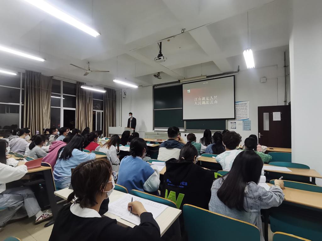 2022年4月20日星期三晚,文新学院在工科三号楼B214教室举办第39期入党积极分子第二次党课培训。马克思主义学院青年博士王威峰老师为第39期入党积极分子们带来党的十九届六中全会精神的全面解读。
