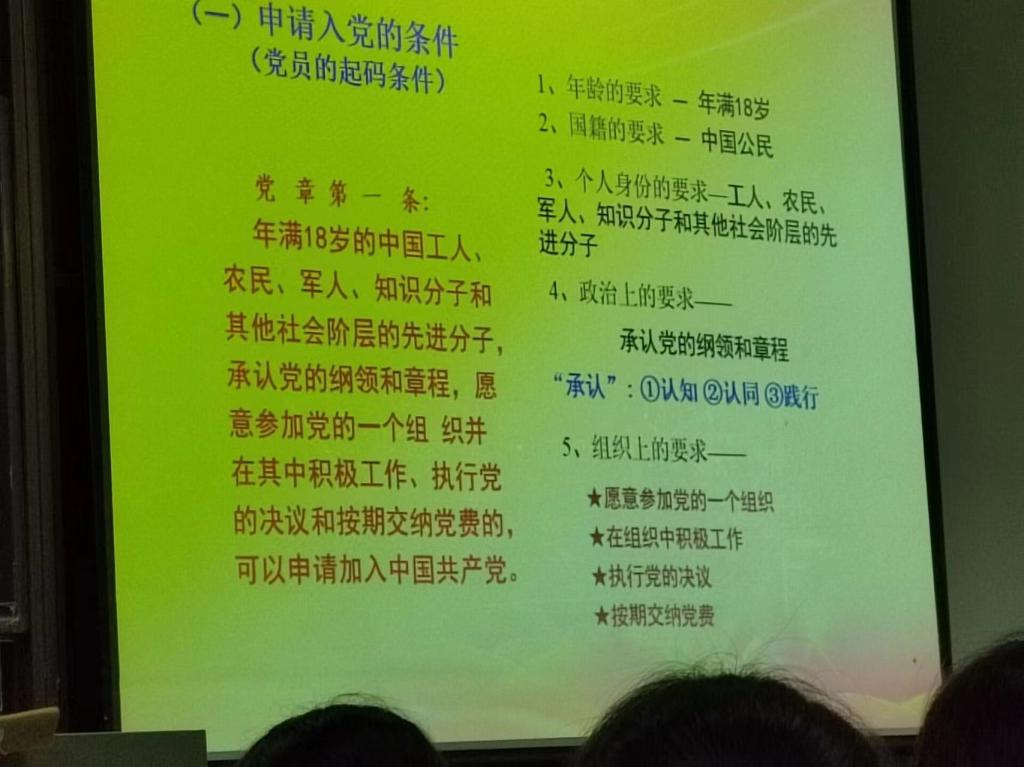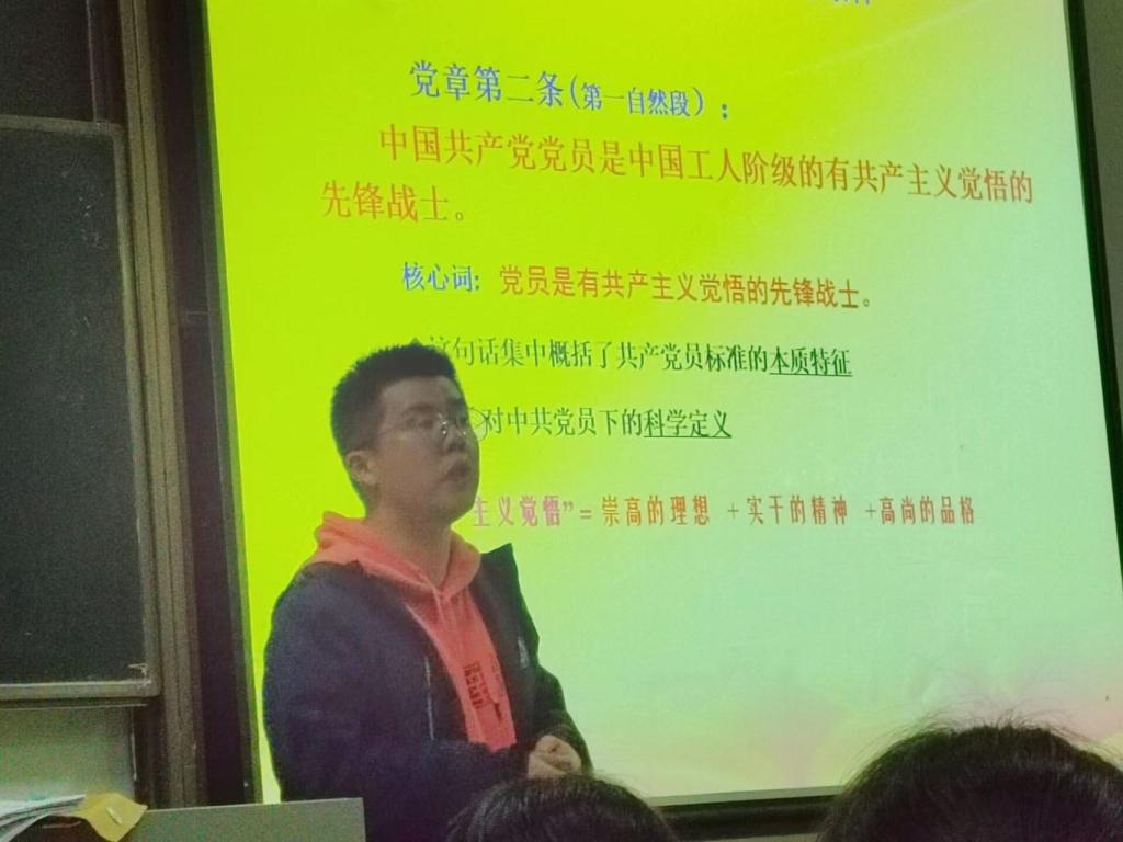 在本次党课上,陈鑫宇首先讲授了入党条件及党员条件,详细罗列并展示了党员的八项义务,强调了“为人民服务”的根本宗旨,带领学院认真学习党章重点及组织要求,让学员们对“什么样的人才是合格的党员”有了进一步认识。陈鑫宇还结合身边真实案例,为学员讲述了作为一名党员的责任与义务,以及入党条件之严格,审查之严谨。这种灵活的授课方式使学员们深受感触,受益匪浅。最后,陈鑫宇按顺序讲解党员入党过程的所有程序。
