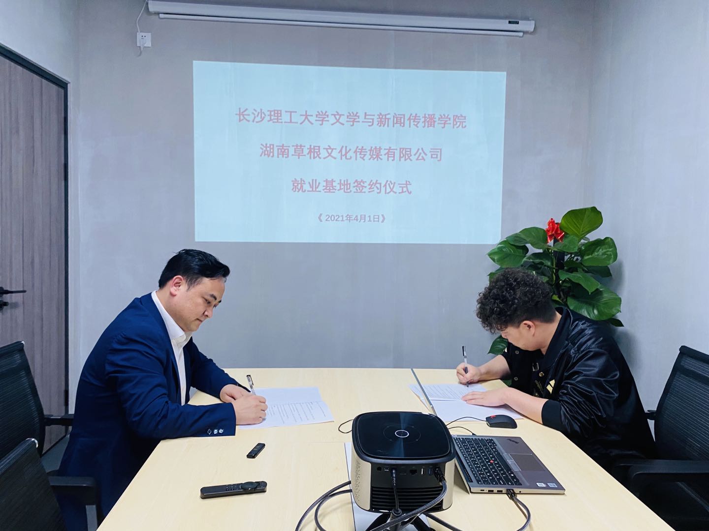 文学与新闻传播学院与湖南草根文化传媒有限公司签订就业基地协议