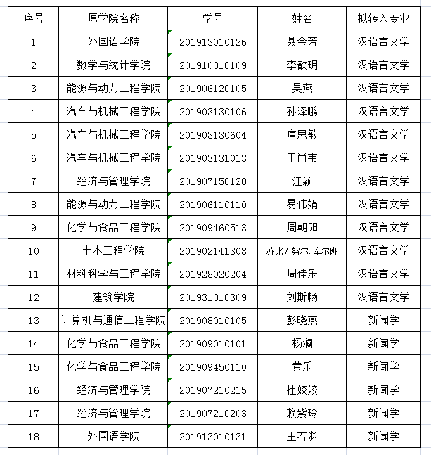 根据《MG冰球突破官网生转专业管理办法》和学校《关于适当调整2019级在校本科生转专业(类)报名及考核办法的通知》要求,经个人申请,我系初审,申请转入我系新闻学和汉语言文学专业的学生名单如下,现予以公示。公示期三天,公示时间为5月21日到5月23日,如有异议,请向系教务办反映,电话:85256150 黄老师