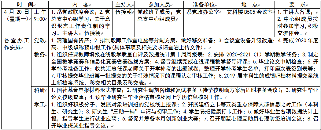 文新系2019-2020 学年度第二学期第十周工作安排表