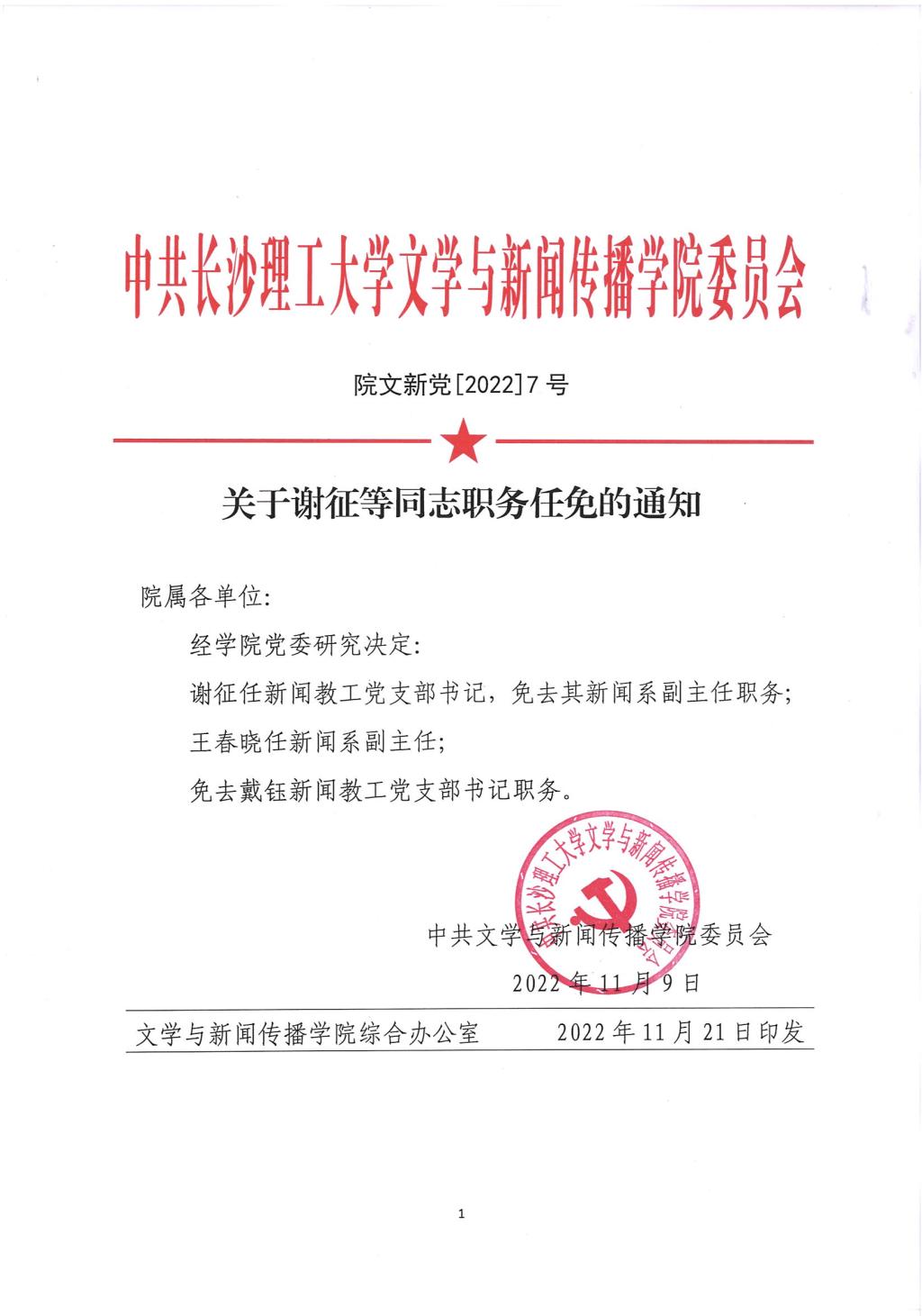 关于谢征等同志职务任免的通知