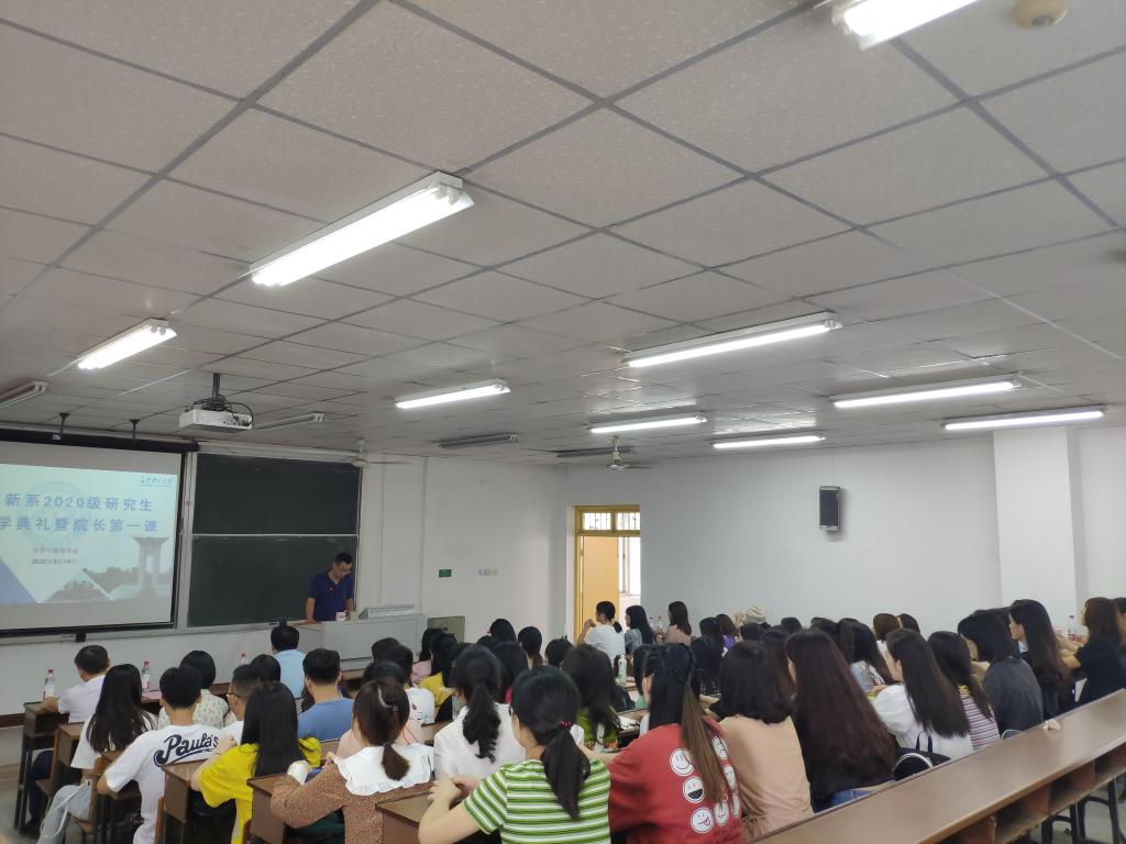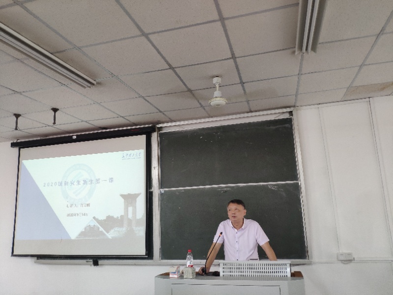 典礼之后,周云鹏教授为我们讲授了生动的开学第一课。首他先从校史校情和系情方面向我们介绍了MG冰球突破官网文新系的发展历程;其次强调作为一名研究生,要遵守学术规范和学术道德,呼吁大家要有扎实的专业知识和较强的实践能力。最后从个人角度出发,号召大家要厚植家国情怀和远大理想,将“中国梦”、“长理梦”和“个人梦”结合在一起。