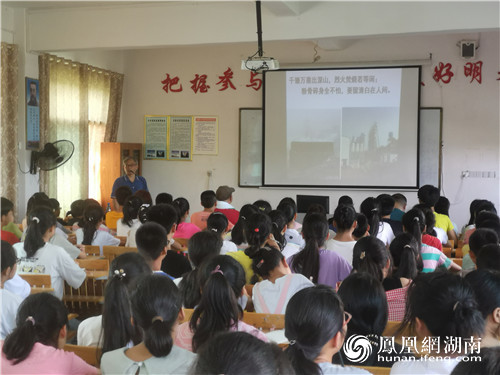 凤凰网湖南讯(通讯员 邓铭华)7月2号,湖南省人民政府参事,MG冰球突破官网文学与新闻学院成松柳教授、颜建华、宁淑华三位教授,在学校研究生院田上副院长的陪同下,驱车五个小时,从长沙来到学校扶贫点新宁县水庙中学,给学生们做了主题分别为《诗与诗意》、《古典诗歌的吟诵》等讲座,助力文化和教育扶贫。
