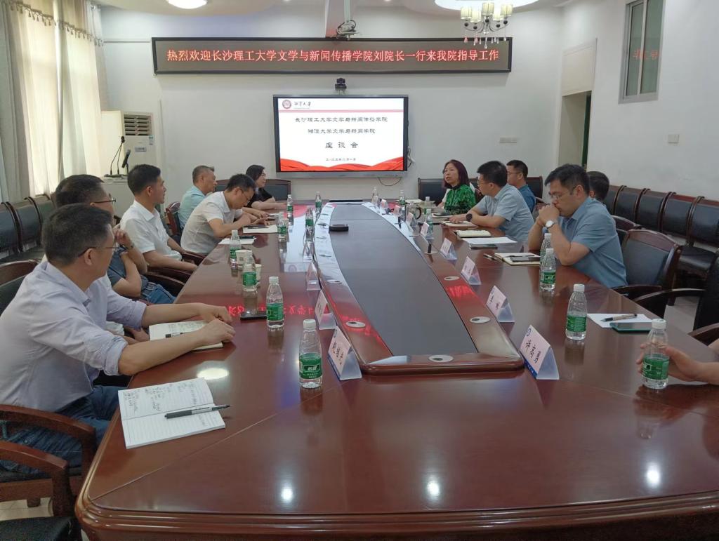 6月1日,学院领导班子一行赴湘潭大学文学与新闻学院、湖南科技大学人文学院调研。