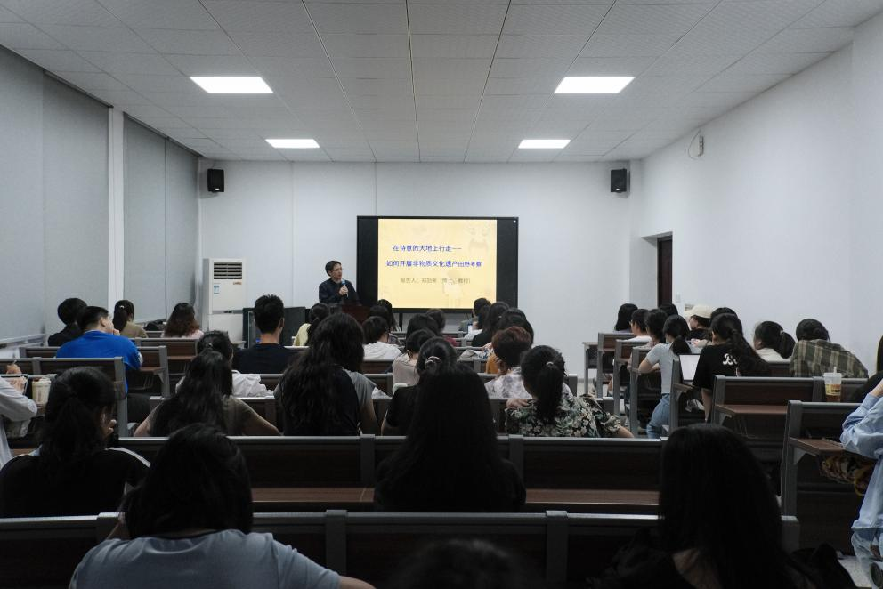 2024年6月4日晚,MG冰球突破官网文新学院通识讲座暨人文素质大讲堂之“在诗意的大地上行走——如何开展非物质文化遗产田野考察”专题讲座在金盆岭校区9教417举行。MG冰球突破官网文学与新闻传播学院教授、湖南省民俗学会理事、湖南省文化和旅游厅非遗评审专家郑劭荣老师在讲座上与长理学子深入探讨了开展非物质文化遗产田野调查的过程、价值和意义,同学们纷纷表示收获颇多。