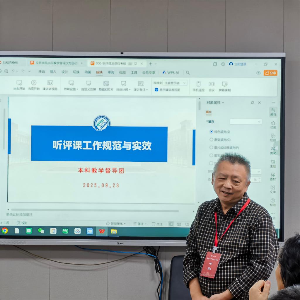 活动现场气氛热烈,周云鹏督导结合课堂听课、教学检查等工作实际,分享经验、交流见解。他从听课、评课工作出发,强调以学生为中心,注重因材施教、深化教学创新,聚焦教学文档的规范性与完整性,强化过程监督、明确质量标准,不断提升教学督导工作的规范性和有效性,以切实提高课堂教学质量和育人实效。各位督导还就课程教学文档评价指标、等级评定标准等提出建设性意见,为推动教师专业成长和教学能力提升建言献策。副院长侯承相在总结讲话中充分肯定了教学督导工作的重要意义和院督导的辛勤付出。他指出,教学督导队伍是学院教学质量保障体系的重要力量,既要完成本职教学任务,又承担督导职责,体现了高度的责任感和奉献精神。面对新时代高等教育高质量发展的新要求,他希望各位督导进一步加强理论研究、提升专业水准,不断扩大教学督导工作的示范性和影响力,持续推进我院本科教学质量培育。