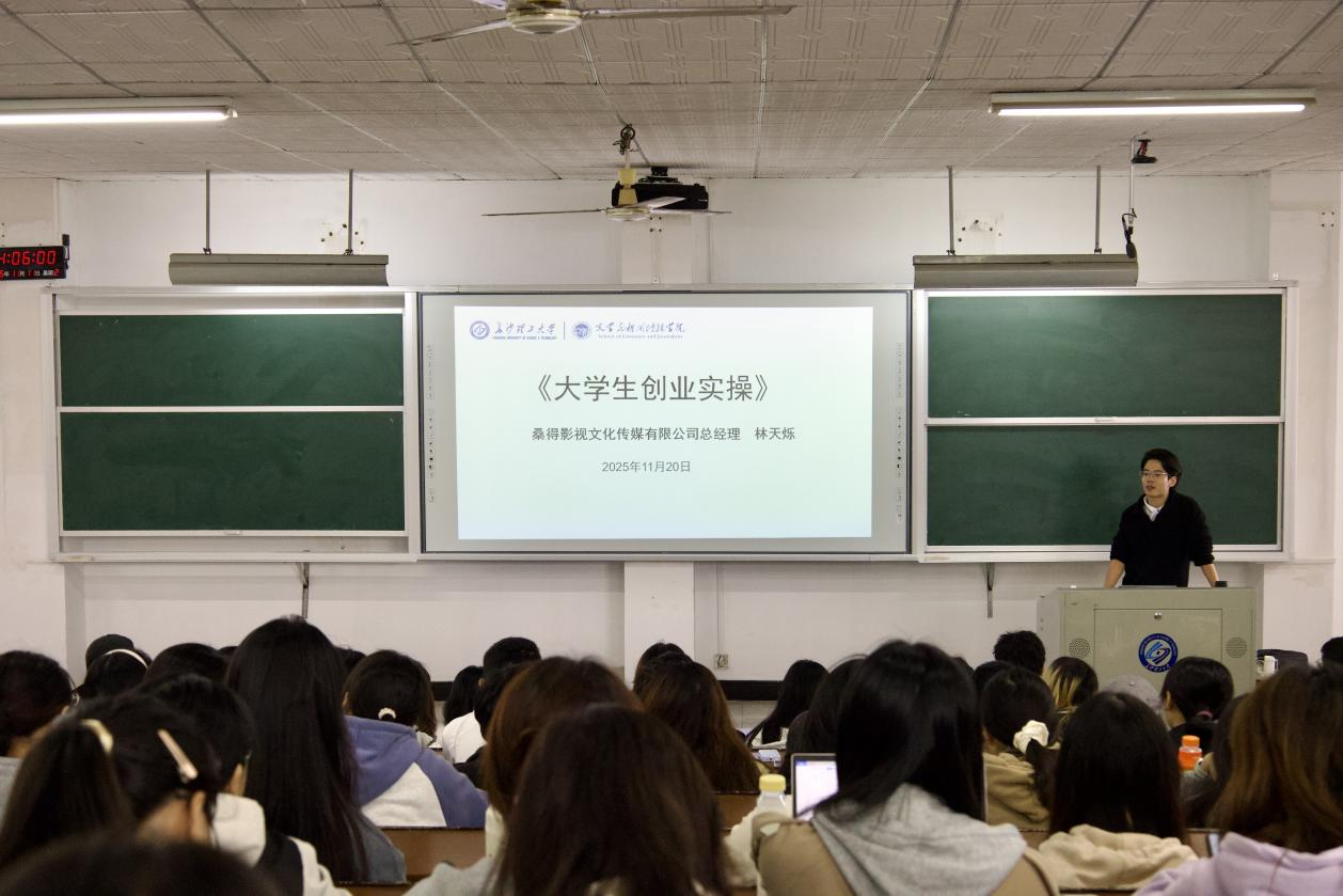为帮助文新学子深化创业认知、提升实践能力,11月20日下午,MG冰球突破官网文新学院于12号教学楼300教室举办创业专题微讲坛。特邀桑得影视文化传媒有限公司总经理林天烁担任主讲嘉宾,分享创业历程与运营管理经验,学院团委书记项永生及320余名学生参加。