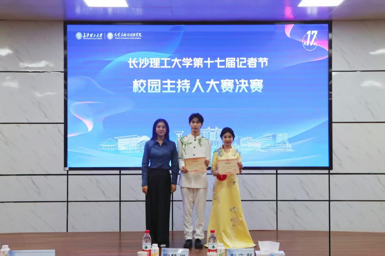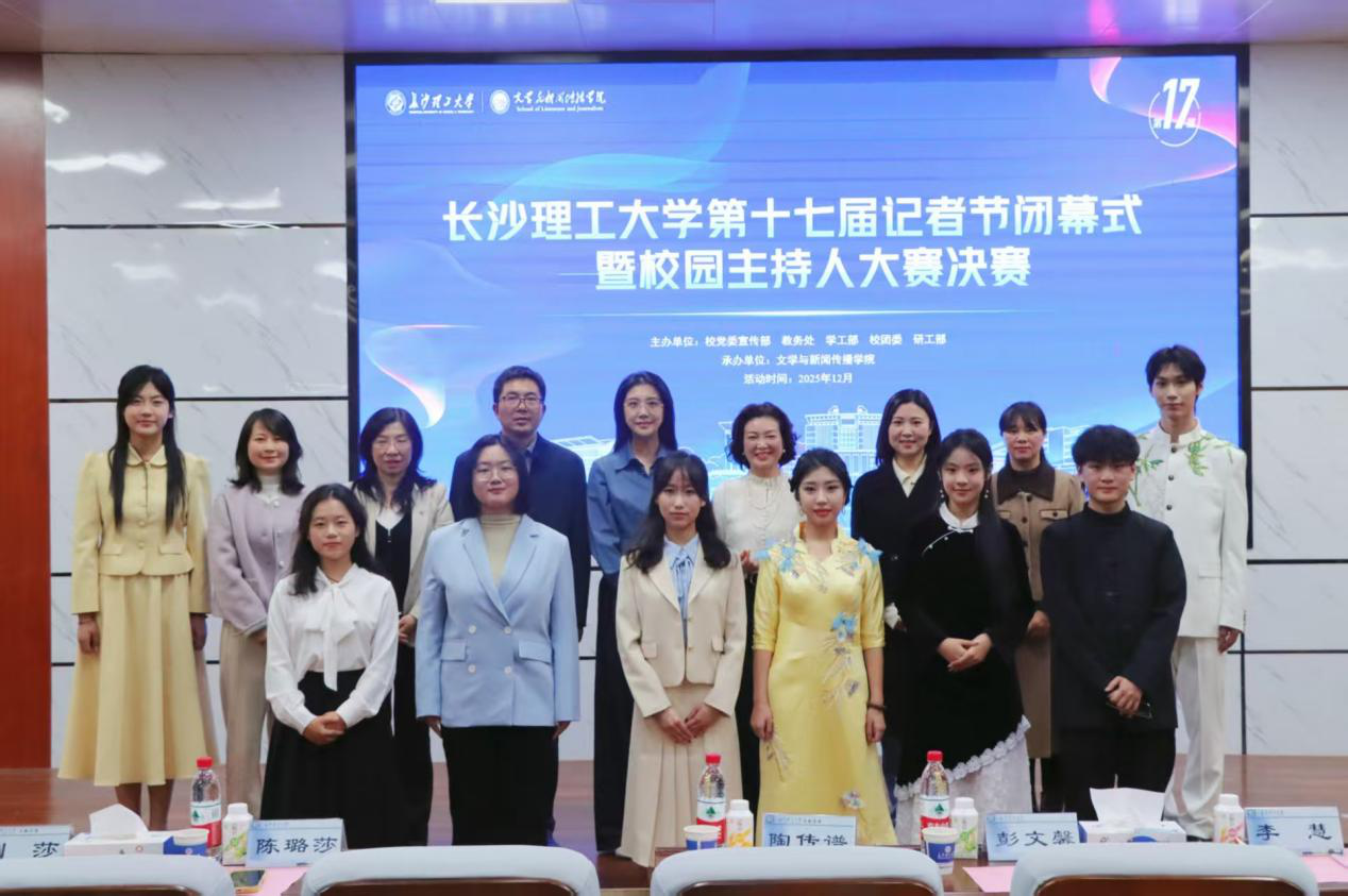 2025年12月19日19:00,由校党委宣传部、教务处、学工部、校团委、研工部主办,文学与新闻传播学院承办的MG冰球突破官网第十七届记者节闭幕式暨校园主持人大赛决赛在金盆岭校区四号教学楼108学术报告厅举行。山东广播电视台主持人彭文馨,湖南省朗诵艺术协会支部书记、全国“读书成才女职工”获得者李慧,校团委副书记(主持工作)陈璐莎,校学生工作部副部长陶传谱,校图书馆副研究馆员、国家汉办语合中心国际汉语教师、湖南省语委普通话测试员张雪梅,文新学院新闻系副教授、湖南省高校教学能手曾志华,文新学院党委副书记刘莎出席本次活动并担任评委。