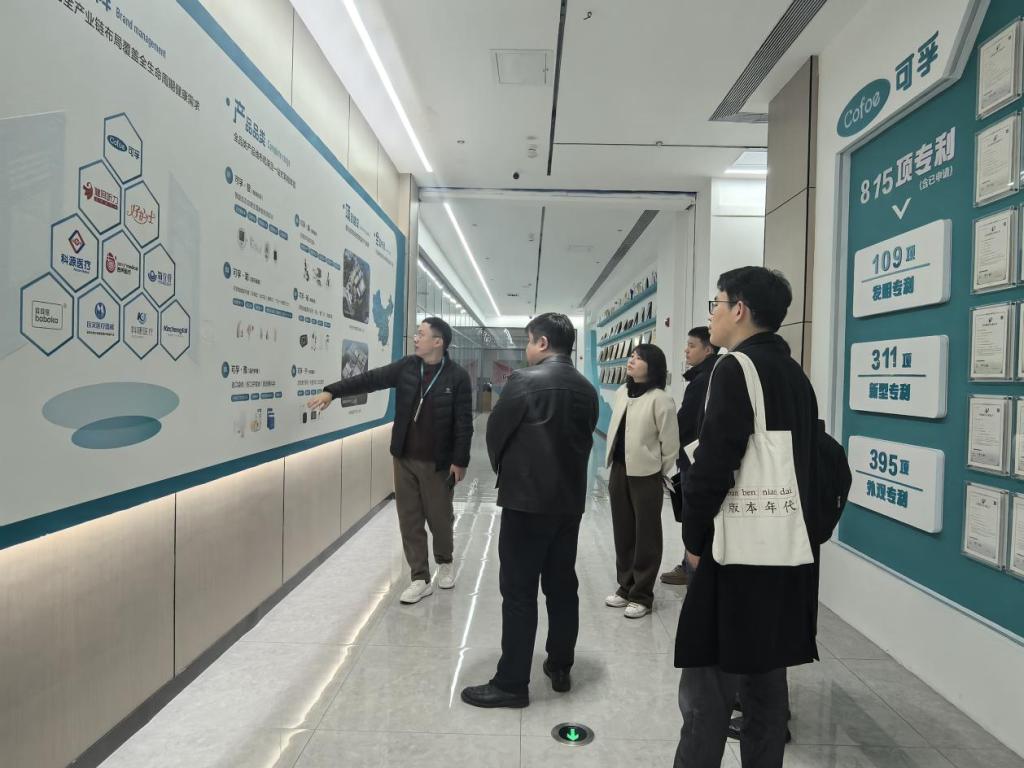 调研组人员首先参观了可孚医疗产品陈列区,详细了解企业核心产品与创新成果,并实地考察企业办公环境及研发中心。参观过程中,企业相关负责人重点介绍了公司及旗下子品牌的发展历程与市场布局。随后,双方在会议室召开座谈会,就深化校企合作事宜进行深入交流。可孚医疗人力资源负责人详细介绍了企业发展规划与校园招聘需求,双方围绕校园招聘、大学生职业生涯规划、“三湘名企行” 等事项展开充分探讨。