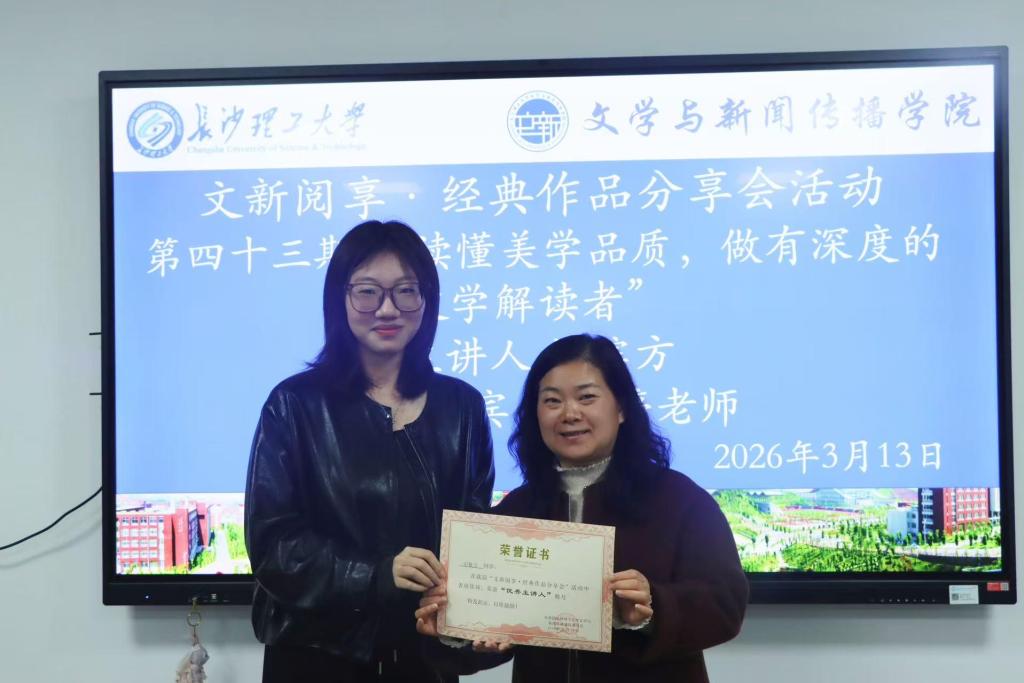 此次分享会以美学经典著作为载体,为同学们搭建了从“直观感受作品”到“专业解读作品”的文学分析桥梁,不仅明晰了美学核心概念与底层思维方法,更让大家体会到美学对文学学习的指导意义,有效拓宽了同学们的专业视野,激发了同学们对文学与美学融合学习的探索兴趣。