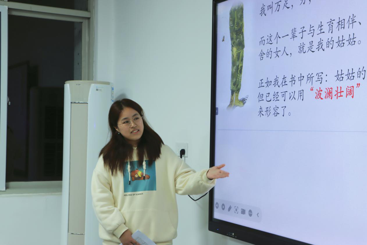在核心主题剖析环节,胡幸怡挖掘作品思想内涵,提出三大主题。一是个人与时代的关系,姑姑的命运起伏是国家意志与个体选择碰撞的缩影,引发大家对历史责任归属等的思考;二是生育相关的多重现实境遇,探讨不同背景下女性在生育层面面临的各类困境,反思传统认知带来的影响与相关现实问题;三是集体罪责意识,在时代发展的特定进程中,每一个人的行为都或多或少与相关人生境遇的形成有关,没有人是旁观者。分享过程中,她围绕主题设置多个开放式提问,引导同学们结合作品与现实交流见解,现场讨论热烈,思想碰撞频繁。
