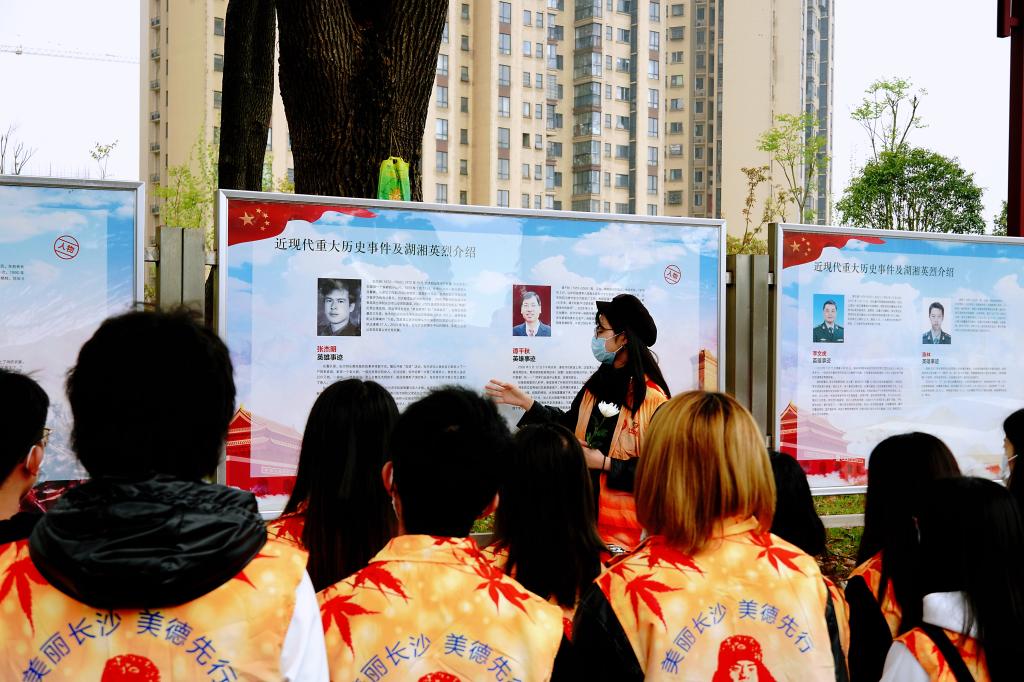 随后,全体党员来到湖湘烈士墓碑前开展捡拾垃圾和擦拭墓碑等志愿服务。党支部书记楚艳鸽讲话,鼓励大家继承遗志,传承爱国奉献担当的红色精神。