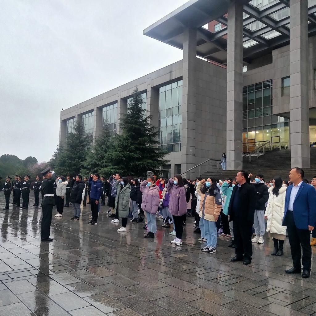 寒风细雨、天蒙蒙亮,同学们早早集合完毕,以昂扬的精神面貌迎接本学期第一升旗仪式。随着“升——国旗”口令后,长理民兵连国旗班护卫着鲜艳的五星红旗入场,他们精神饱满,步伐矫健。伴随着国旗缓缓升起,同学们唱响国歌,行注目礼,庄严肃穆,在国旗下宣誓,“志存高远,坚定信念;热爱祖国,服务人民……”誓词刻进心头,未来的行动一定能落到实处。