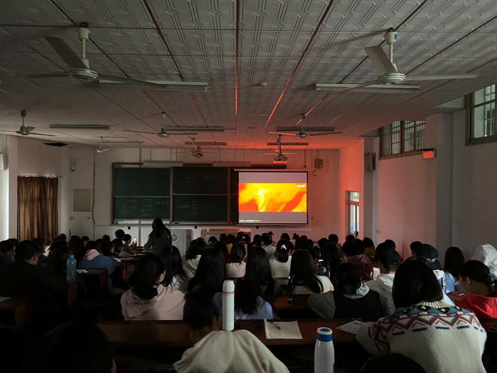 影片放映前,李敏老师进行简短讲话,她说到,我们国家经历了无数风风雨雨,正是这些不知名的平凡人默默无私的奉献,前赴后继,才有了我们今天幸福安逸的生活。希望同学们认真观影,感受平凡人之于国家建设的力量,并认真思考,作为新时代青年,我们应该做些什么,来报答祖国,报效社会。