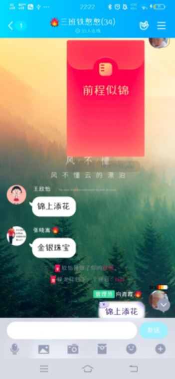 活动开展期间,班级同学积极参与,踊跃发言。在活动分享部分,班级同学以文字、照片,视频、语音形式进行了生活、学习方面的分享。讨论交流部分,班级同学就自己生活、学习方面讨论了近期状态、调节方法,活动分享与讨论交流两部分相辅相成,较好体现了班级同学的生活、学习状态。活动最后部分以线上游戏为主,进行了QQ成语接龙、飞花令以及扔骰子定照片游戏,游戏期间班级同学积极抢答,活力满满。活动三个环节相互关联,增进了班级同学感情,增强了班级凝聚力。