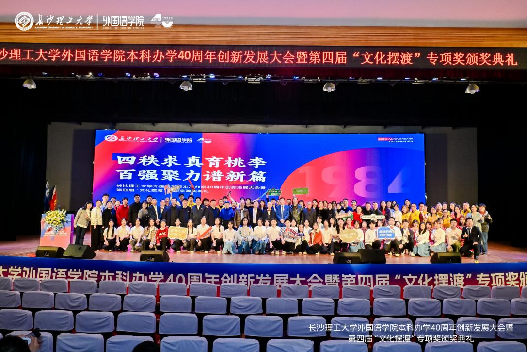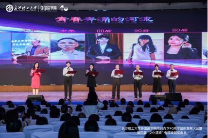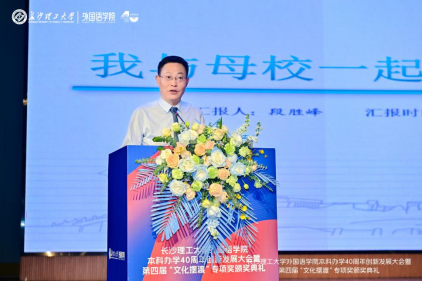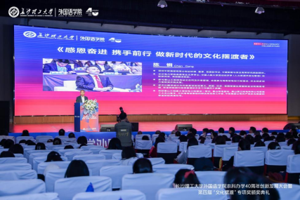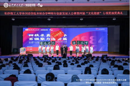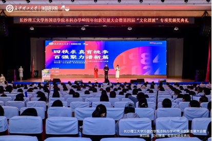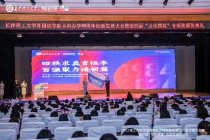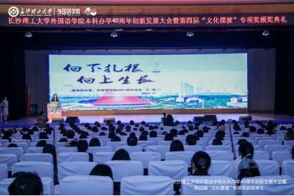 11月24日上午,MG冰球突破官网外国语学院在金盆岭校区举办本科办学40周年创新发展大会暨第四届“文化摆渡”专项奖颁奖典礼,以外语之名,携手前行,拥抱未来。MG冰球突破官网副校长、校友总会会长谈传生、副校长刘朝晖、张军辉、学校相关职能部门负责人、社会爱心人士与企业代表、学院老教师、返校校友及全体师生共1000余人参加大会。大会由学院党委书记文丽丽、校友代表丁文山、学生代表熊雅萱主持。