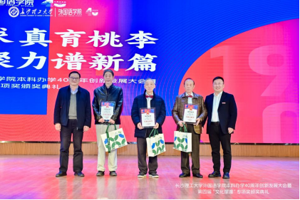 在颁奖典礼上,领导和嘉宾依次为获得社会实践奖、文化交流奖、专业卓越奖、综合能力奖及文化摆渡者奖章的学生颁奖,同时为获得教学育人奖、实践育人奖、管理育人奖、服务育人奖及卓越贡献奖的学院教师颁奖。卓越贡献奖获得者覃先美、郑延国与校友代表,在校师生共同讲述《青春奔涌的河流》,向一代代外语人的闪亮青春、不懈奋斗致敬。