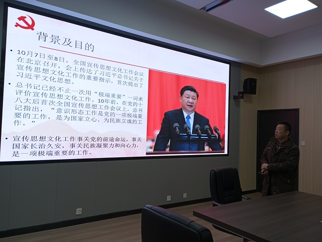 黄坚副院长领学《习近平关于宣传思想文化工作的重要指示》,他从背景及目的、七个着力、对所有党员干部的要求等三个方面进行解读。他重点讲述宣传思想文化工作事关党的前途命运,事关国家长治久安,事关民族凝聚力和向心力,是一项极端重要的工作。习近平总书记强调,要深刻领悟将“着力加强党对宣传思想文化工作的领导”排在首位的深邃意蕴,深刻认识党的领导是宣传思想文化工作的生命线,是宣传思想文化事业始终沿着正确方向前进的根本政治保证,坚定不移把政治方向摆在第一位,让党的旗帜在宣传思想文化战线高高飘扬。