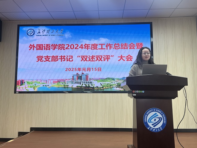 1月15日下午,学院在金盆岭校区三号教学楼321报告厅召开2024年度工作总结会暨党支部书记“双述双评”大会。会议由学院党委副书记周芳主持,学院领导班子成员、学院全体教职工参加会议。