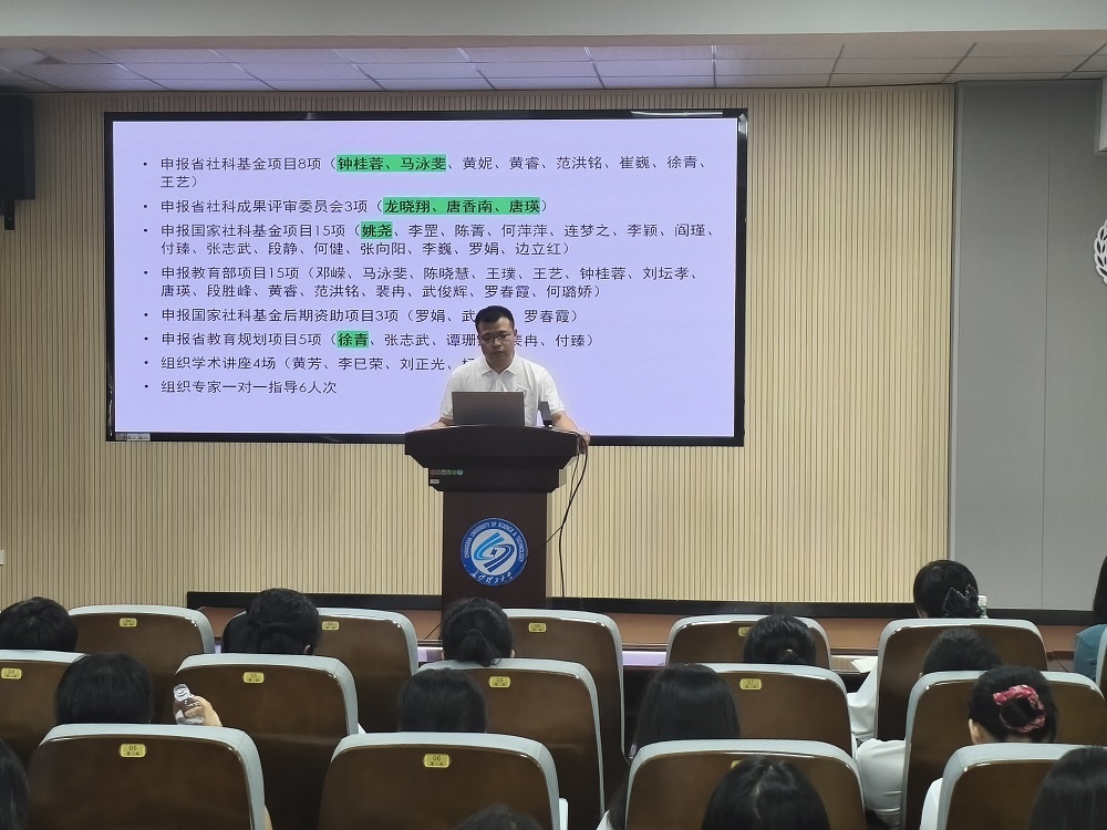 党委委员张志武部署了科研与竞赛工作,本学期将进一步加大国家社科基金、教育部人文社科基金、省社科基金等各类课题的申报指导和组织工作,加强专家一对一指导,大力举办(承办)学术讲座及学术研讨会,全力备战全国英语演讲比赛、湖南省跨文化能力大赛等多项赛事。