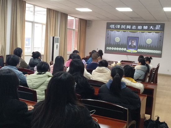 12月6日上午,中共中央、全国人大常委会、国务院、全国政协、中央军委在人民大会堂隆重举行江泽民同志追悼大会。学院组织师生党员通过多种形式集中收听收看大会现场直播。学院党政班子成员及部分师生党员代表在文科楼A-603会议室集中收看追悼大会现场直播。大家怀着悲痛的心情起立默哀,表达对江泽民同志的深切悼念。