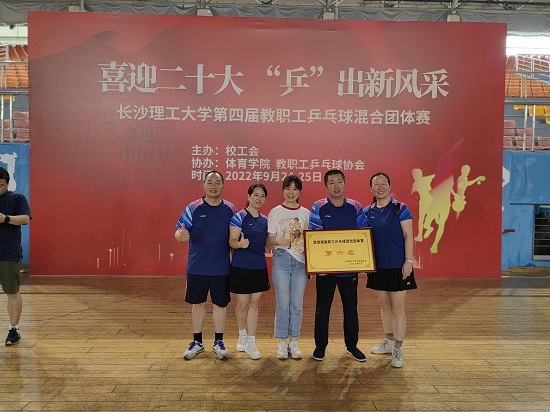金秋九月,秋高气爽。9月24-25日,由校工会主办,体育学院、校教职工乒乓球协会协办的MG冰球突破官网第四届教职工乒乓球混合团体赛在云塘校区体育馆激情上演,来自各学院、机关单位的23支代表队共322名教职工,放下粉笔,拿起球拍,一起“喜迎二十大,‘乒’出新风采”。比赛分男子单打、女子单打、男女混合双打、男子双打、女子双打共五个项目进行,经过分组循环赛、交叉淘汰赛,历经两天共67场的激烈角逐,我院老师不懈奋斗、排除万难,在阵容不足、 队员缺少的情况下取得了第六名的好成绩。