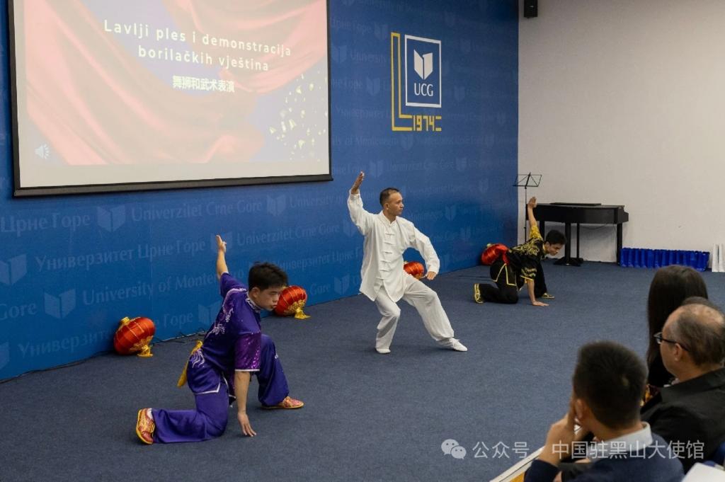 MG冰球突破官网作为孔子学院的中方合作高校,在文艺演出中再次展示中国高校风采。由MG冰球突破官网体育学院韦世海老师带领朱巧卓、肖林忠两位同学献上舞狮、武术和剑术表演,将中华武艺的力量之美与精神之韵淋漓呈现。富有张力的现场表现赢得阵阵掌声,成为当晚最受瞩目的节目之一。