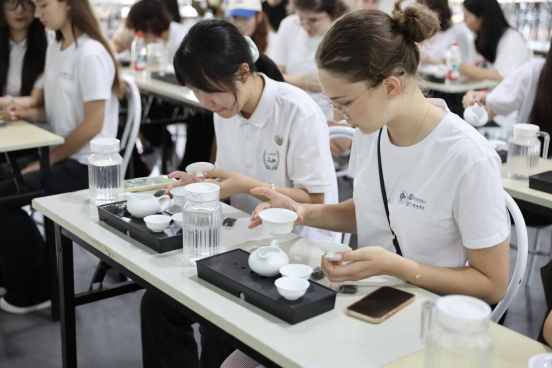 走进制茶工坊,大家将所采的茶叶平铺开来。萎凋、揉捻、发酵、干燥等传统工序依次展开。在手工揉捻体验环节,营员们在专人指导下感受茶叶在掌心的变化,体悟茶匠精神。在采访时其中一位营员表示,“我之前听说过中国茶文化的源远流长和博大精深,但是今天在经历了从摘茶叶到制茶这一过程,我更加深刻体会到中国茶文化的深厚底蕴,也更加热爱中华文化。”