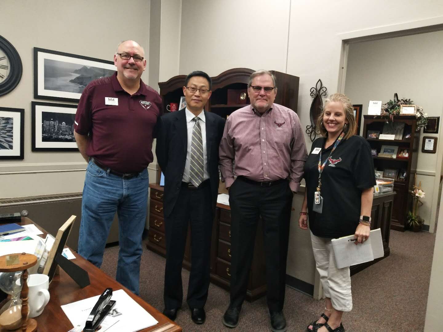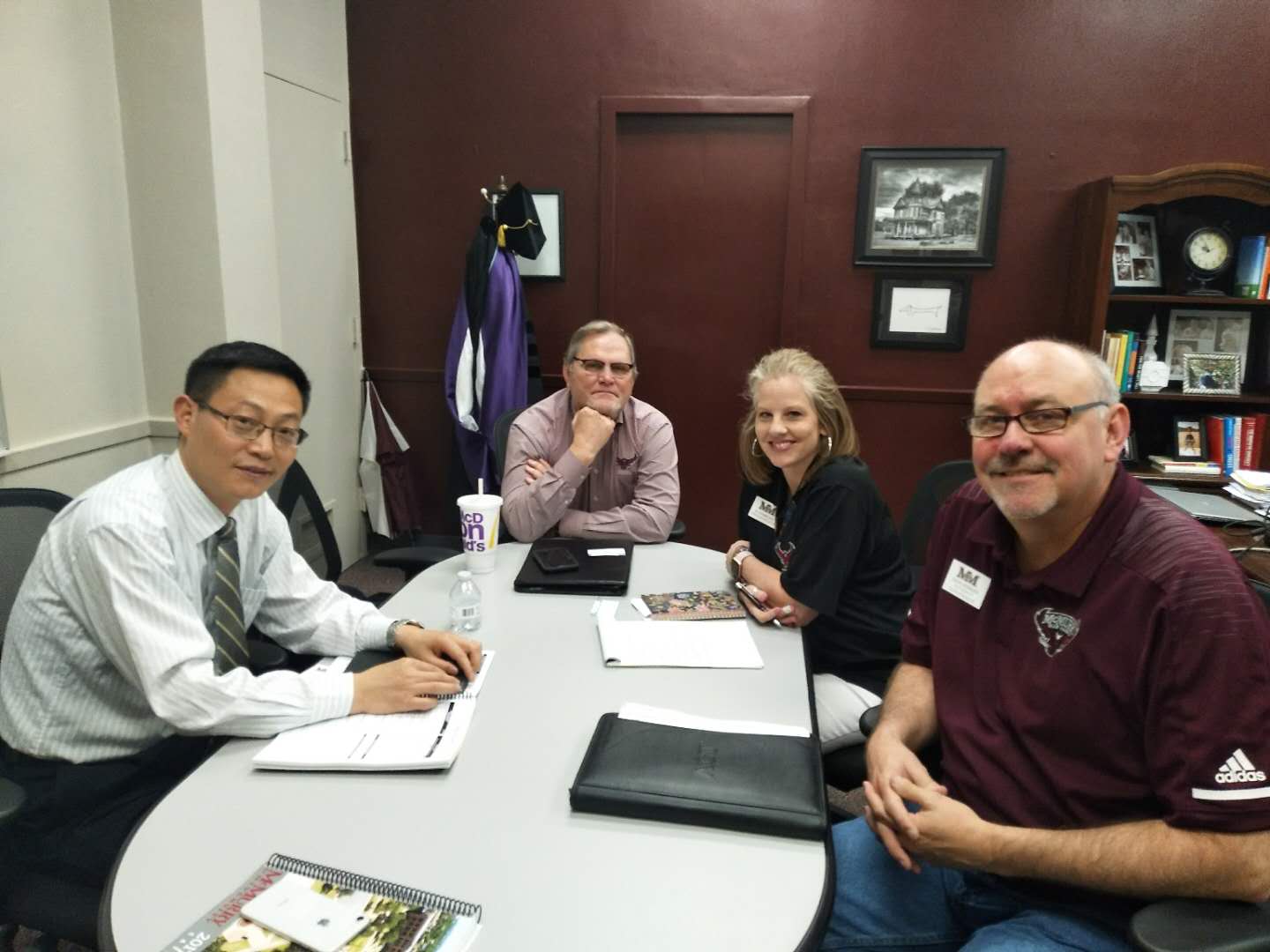 麦克默里大学副校长David Heringer和教师教育系系主任Stephenie等对段胜峰教授的来访表示热烈的欢迎。交流访问期间,双方就互派教师和学生进行学术交流充分交换了意见,并详谈了课程改革和教师教学水平提升计划,双方同意针对外国语学院人才培养定位采用学分制的形式每年派出2-3名教师参加麦克默里大学的部分课程的学习,双方商定要加强课程管理,确保师资培训实效。