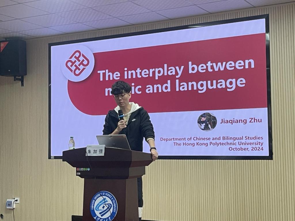 10月29日下午2点,MG冰球突破官网外国语学院特邀香港理工大学语言、认知与神经科学(RCLCN)研究中心副研究员朱家强为师生们开展了一场主题为“语言与音乐的交织”的云影讲坛。本次讲坛旨在深入探讨音乐与语言之间的内在联系,吸引了众多师生前来参加。